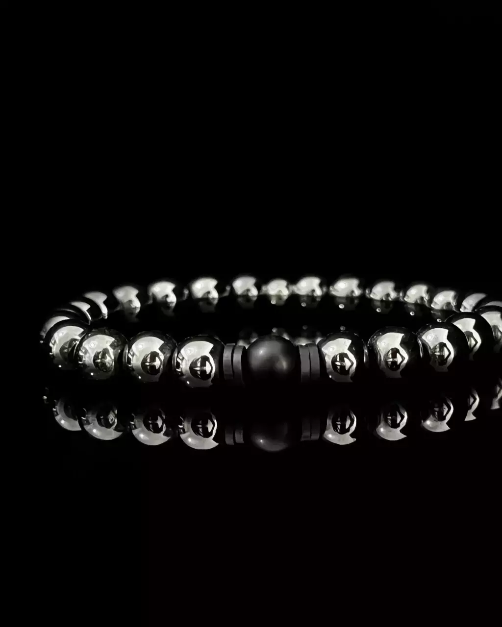 Diseñada con Hematite y Onix 8mm combinada con fimo.